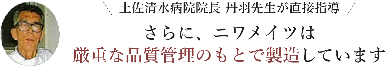 これは丹波免疫研究所で分析と検定を行い、エーパック・ニワ加工工場(土佐清水市)で厳しい品質管理のもとに製造された製品だけに貼られる信頼のマークです。