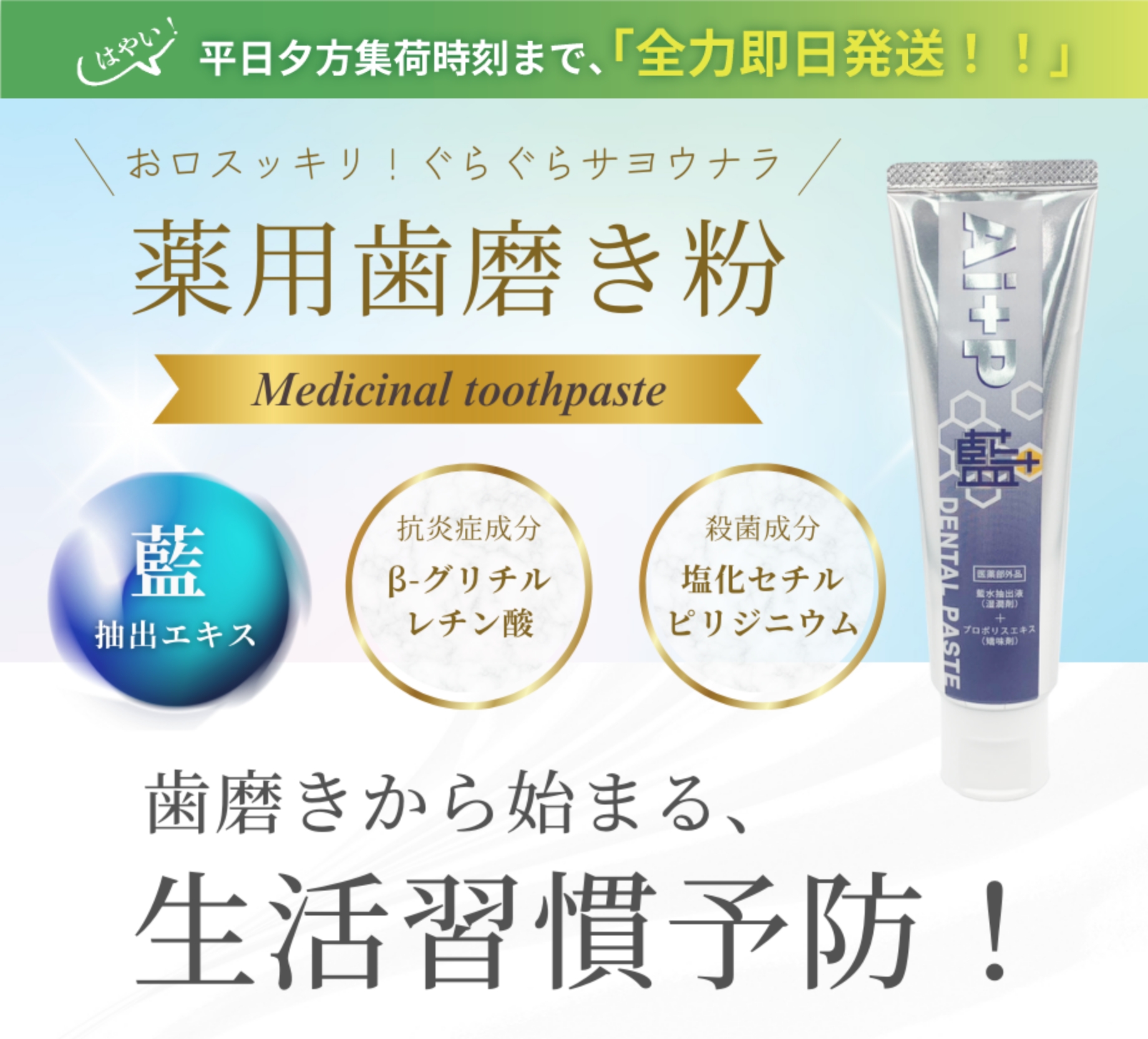「Ai+P デンタルペースト」は、歯周炎・歯肉炎を予防する薬用ハミガキとして、開発されました。