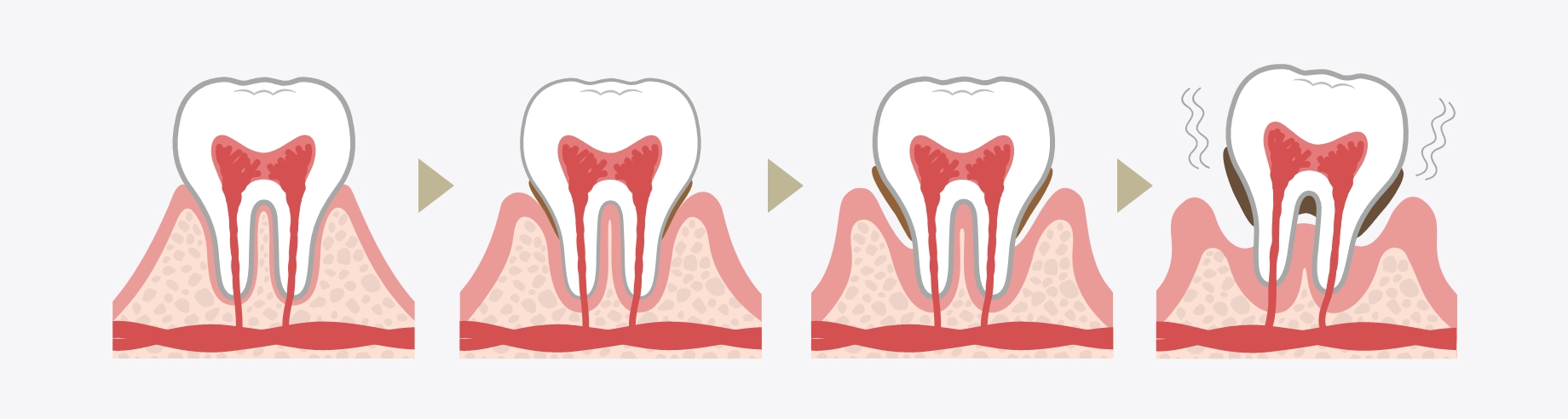 虫歯と違って痛みが無いため、20数年の歳月をかけて徐々に進行していきます。