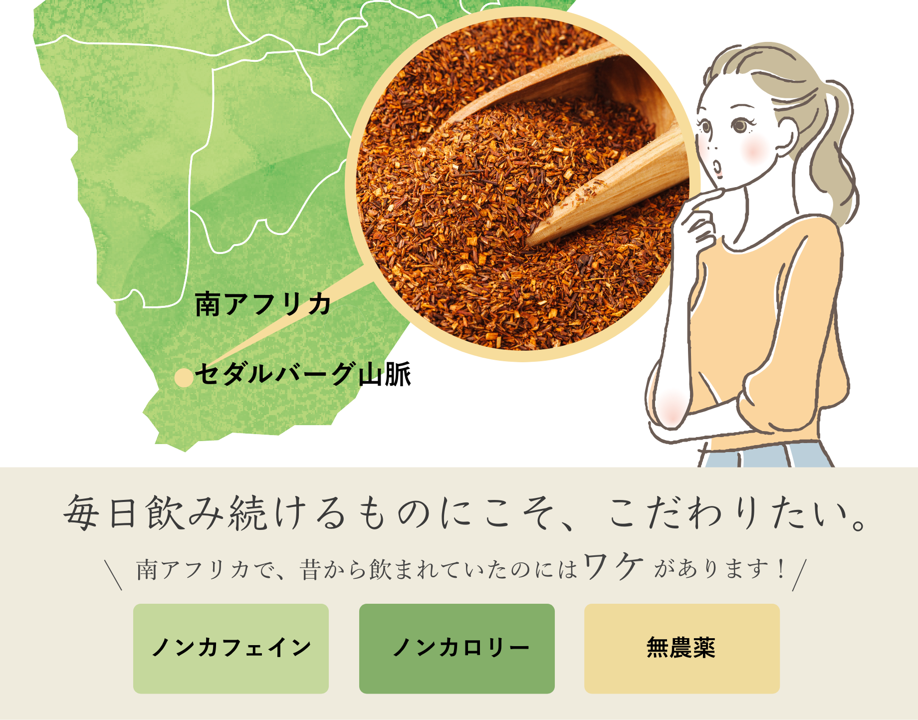 ルイボスティーは、ノンカフェイン、ノンカロリーの理想的な健康茶です。