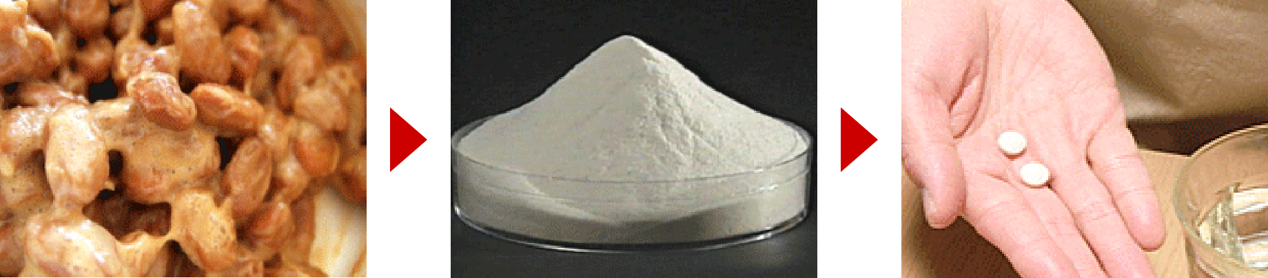 製造元の株式会社大和薬品は、大豆を発酵させ、納豆をつくるナットウ菌(Bacillus subtilis natto)の培養ろ液から特許技術により、健康維持に役立つ成分(ナットウ菌産生たんぱく質)を集め、「精製ナットウ菌培養物(NKCP)」の分離、精製に成功!