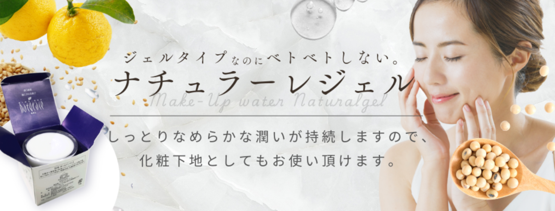 さらっとした使い心地ですが、しっとりなめらかな潤いが持続しますので、化粧下地としてもお使い頂けます。