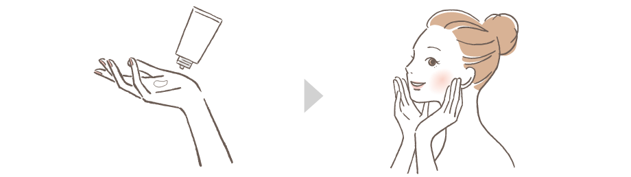 2.手のひら全体で顔、首、身体に手のひらでしっかり押さえつけるようにしてつけてください。